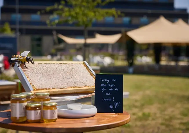 Wij vinden duurzaam en generatie overschrijdend ondernemen enorm belangrijk. Ons hotel is volledig gasloos en 100% all electric, met 120 zonnepanelen voor extra eigen energie. Wij werken met leveranciers die duurzaamheid hoog in het vaandel hebben staan en kiezen waar mogelijk lokaal en biologisch. Onze tuin is aangelegd voor biodiversiteit, met bijenkasten en honing uit eigen tuin die wij verkopen. Wij besparen water, scheiden afval, werken digitaal en stimuleren fietsen, ov en elektrisch rijden.